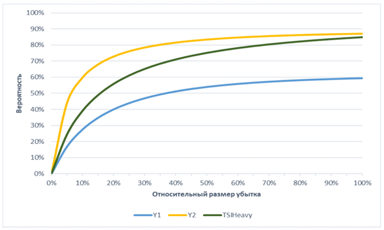 Подобные распределения описывают тяжесть убытков имущественного страхования от всех рисков небольших предприятий промышленности, торговли и сервиса, частного имущества в объектах капитального строительства, а также других объектов, не сильно подверженных разрушительным событиям, приводящим к полной утрате или гибели имущества. Распределение TSI_Y3 хорошо описывает убытки страхования грузов и морского каско, а также убытки страхования специальной и строительной техники.