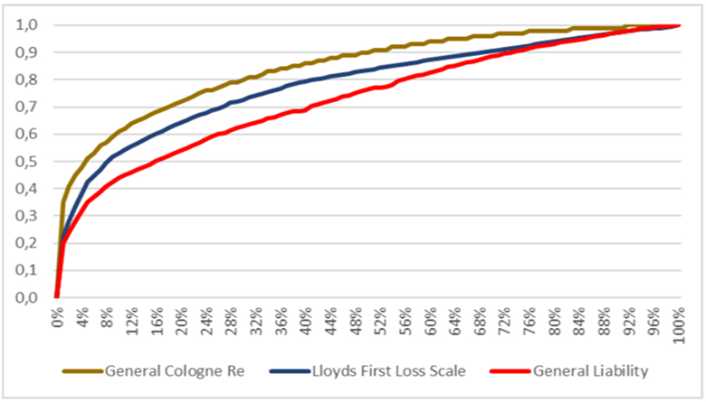 Таким образом, для оценки перестраховочной премии по лееру эксцедента убытка необходимо выбрать подходящую кривую деления риска r(a), для чего сначала требуется сделать предположение относительно распределения тяжести убытка единичных рисков, покрываемых леером договора перестрахования.