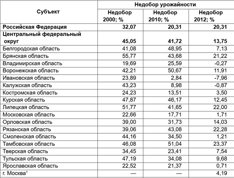- На основании данных об урожайности определено отрицательное отклонение от средних значений урожайности (далее — недобор урожайности; см. приложение 2).